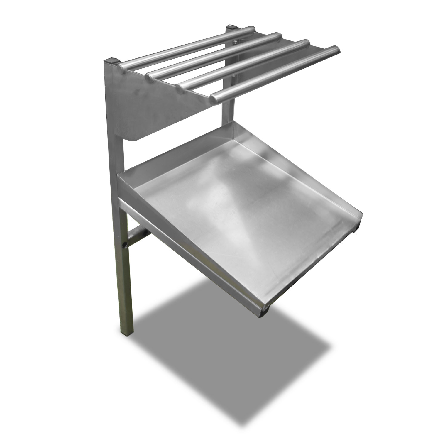 Stainless steel shelving unit featuring a top tubular shelf and an inclined shelf beneath (515x515mm)with a lip preventing items from falling off. Ideal for use in commercial kitchens. SKU: RHCs2018