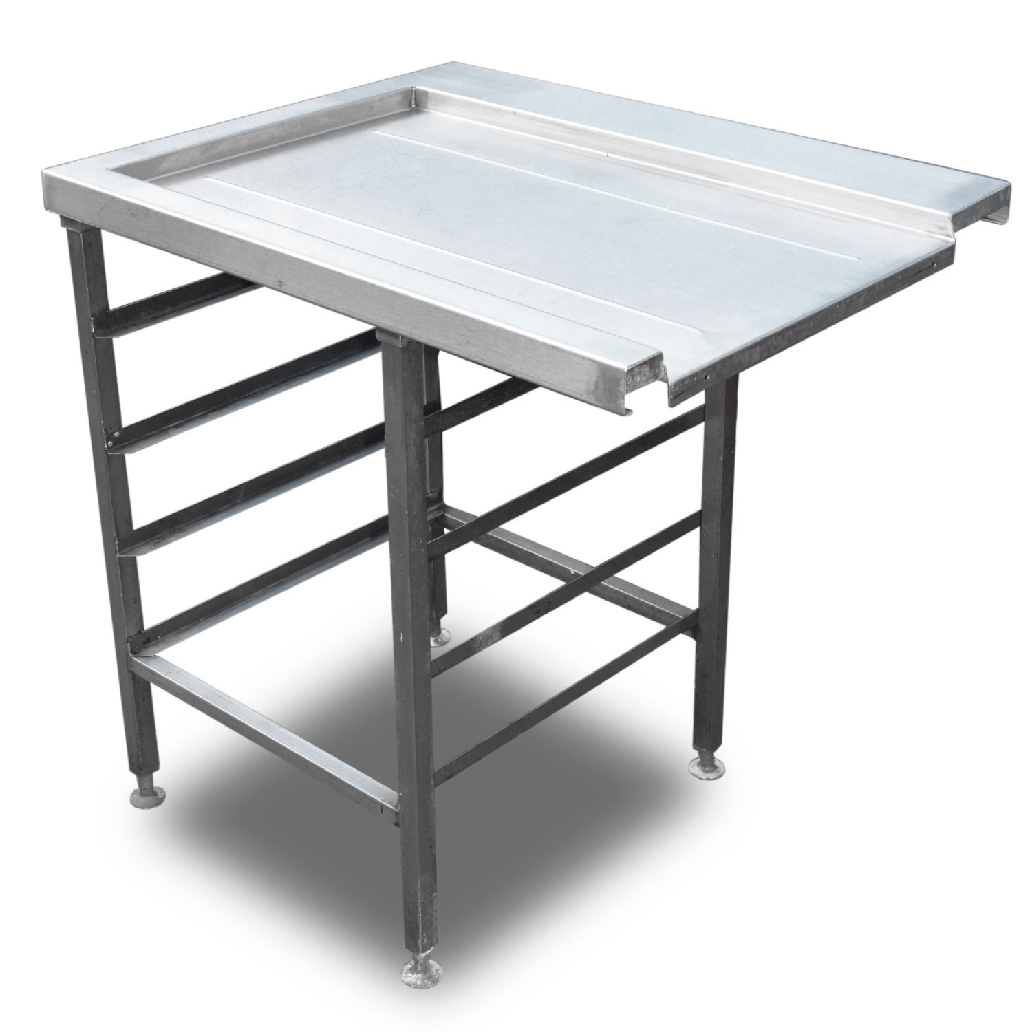 Stainless steel table designed to be compatible with a pass through dishwasher. Features indent and racking suitable for 500×500 dishwasher baskets.