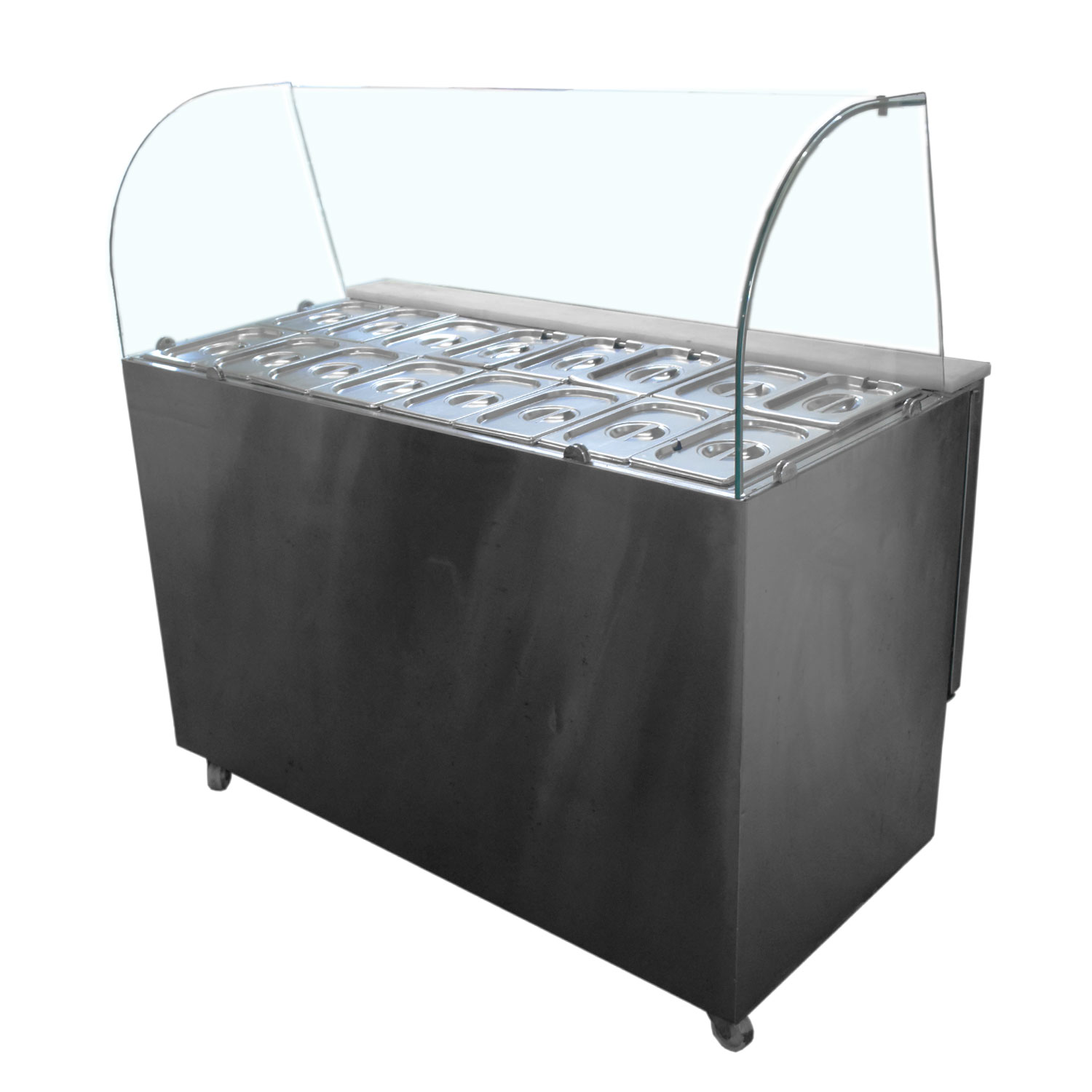 This 3 door glass top saladette fridge by Adexa, with 368ltrs of storage and constructed from stainless steel is a great solution for keeping your most-used ingredients close to hand. Designed to provide easy access to cold salad and sandwich ingredients this saladette fridge features three self-closing doors, food grade plastic preparation bench area with a stylish glass top helping to prevent other contaminants from falling into the containers helping with food hygiene, castor wheels for easy manoeuvrability. Comes complete with 3 shelves that are 1/1 gastronome compatible and 16 ¼ Gastronomes for the saladette top. SKU: RHC8706