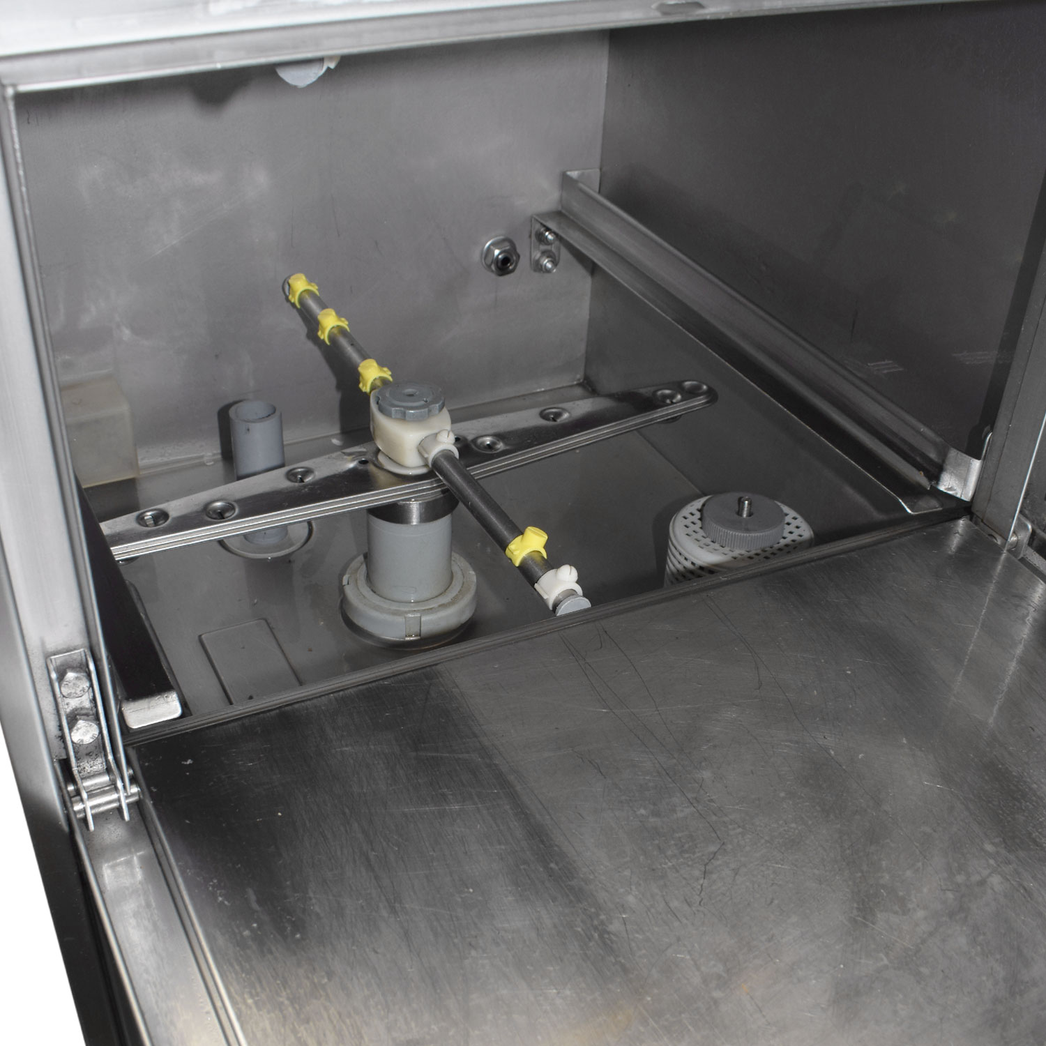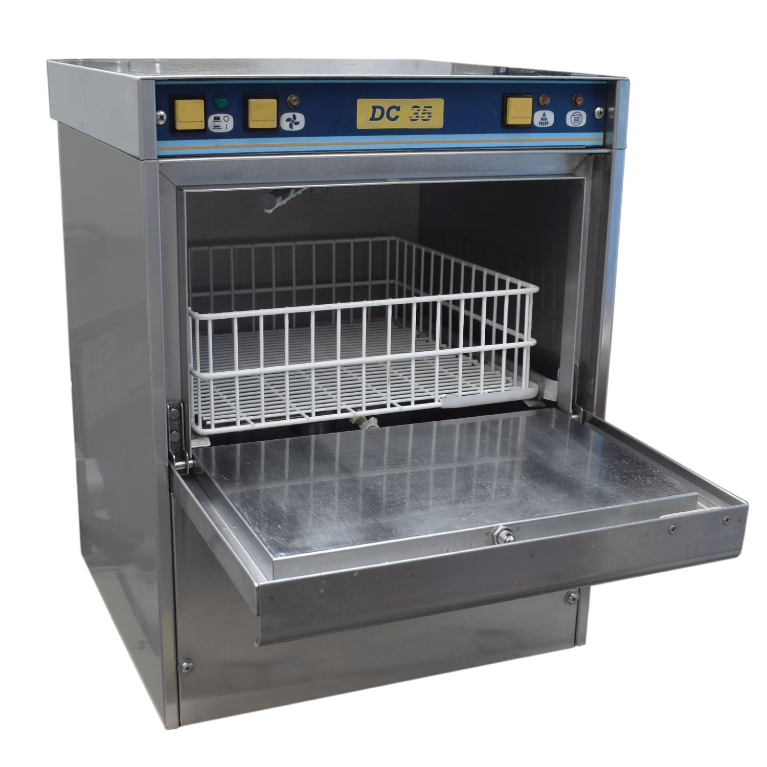 This glasswasher made by DC and able to be placed on counter top is ideal for use in any small to mid-range business. Features double skinned door for reduced noise and heat loss, detergent and rinse aid pump and gravity drain. Stainless steel construction makes this glasswasher durable and easy to clean and its compact design is ideal where space is at a premium. Comes complete with 350×350 basket. SKU: RHC8839