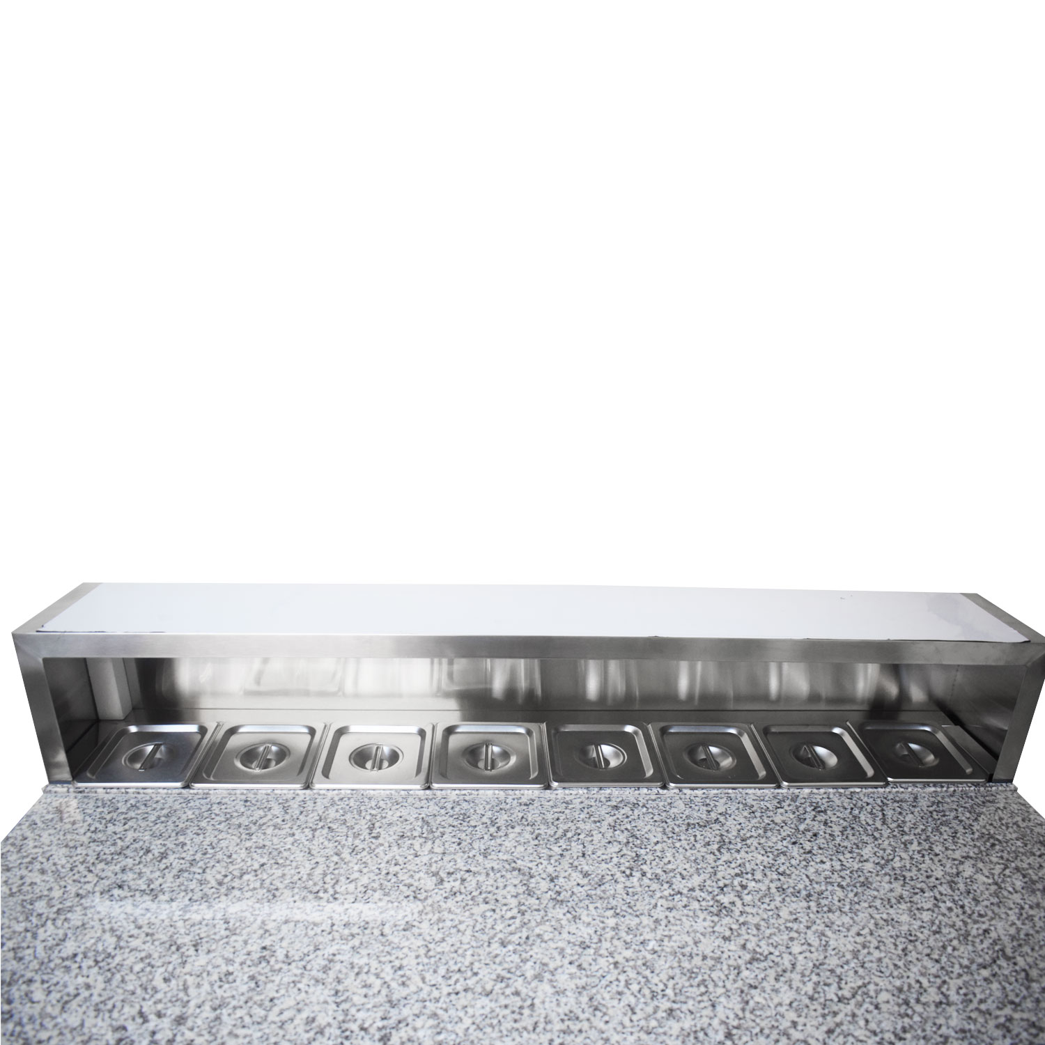 This immaculate marble top 3 door prep counter is great for the storing as well as prepping of food with its fridge section bellow and it built in saladette that is able to hold up to 8 1/6 GN pans (150 mm deep)