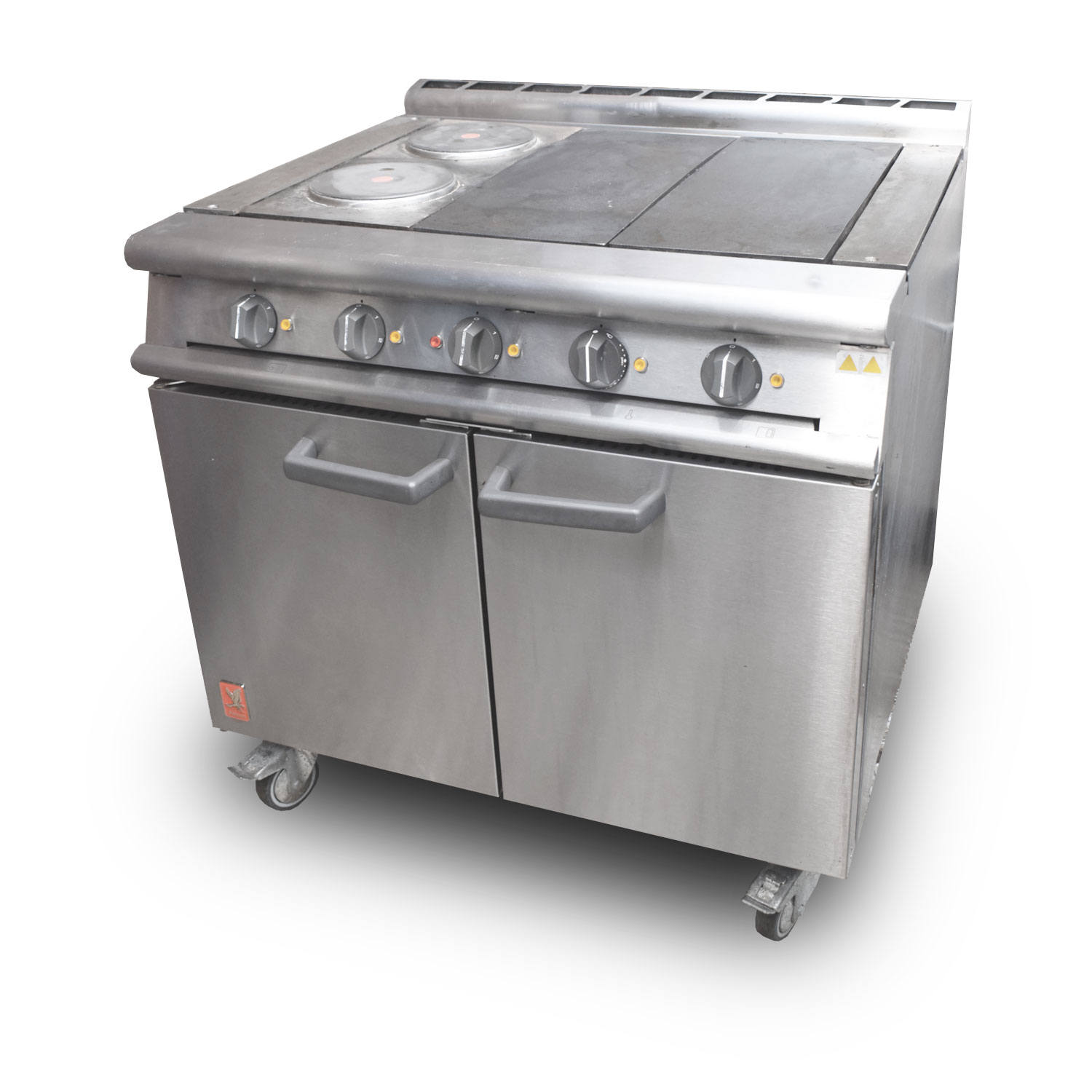 The Falcon Electric Solid Top Oven Range is a heavy‑duty 4‑hotplate electric range with a large 2/1 GN oven.