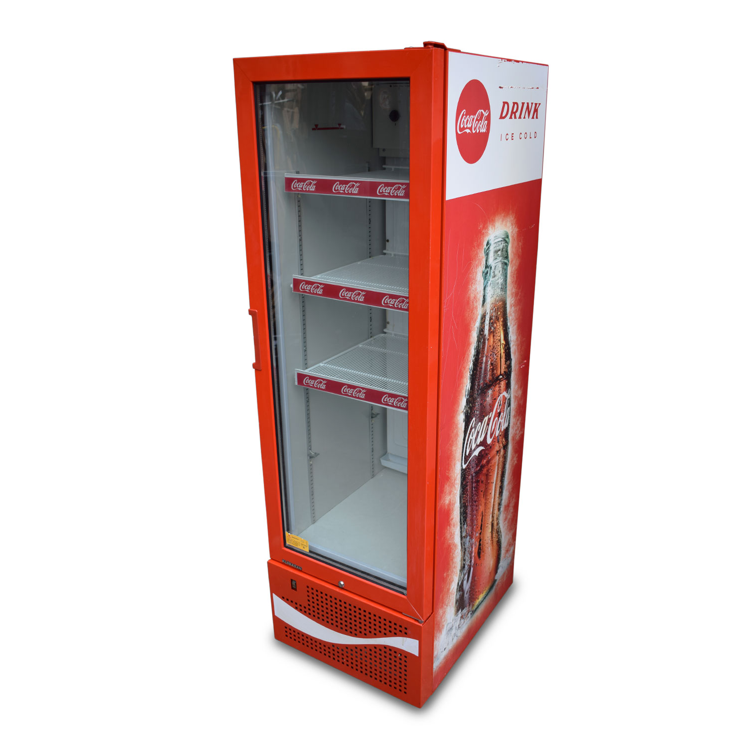 This upright display fridge made by Klimasan provides both high quality components and effective refrigeration performance. The glass door and interior light helps to showcase your products on display and maximise sales. This bottle cooler also features adjustable shelves and attractive coca cola branding helping your business stand out. SKU: RHC8730