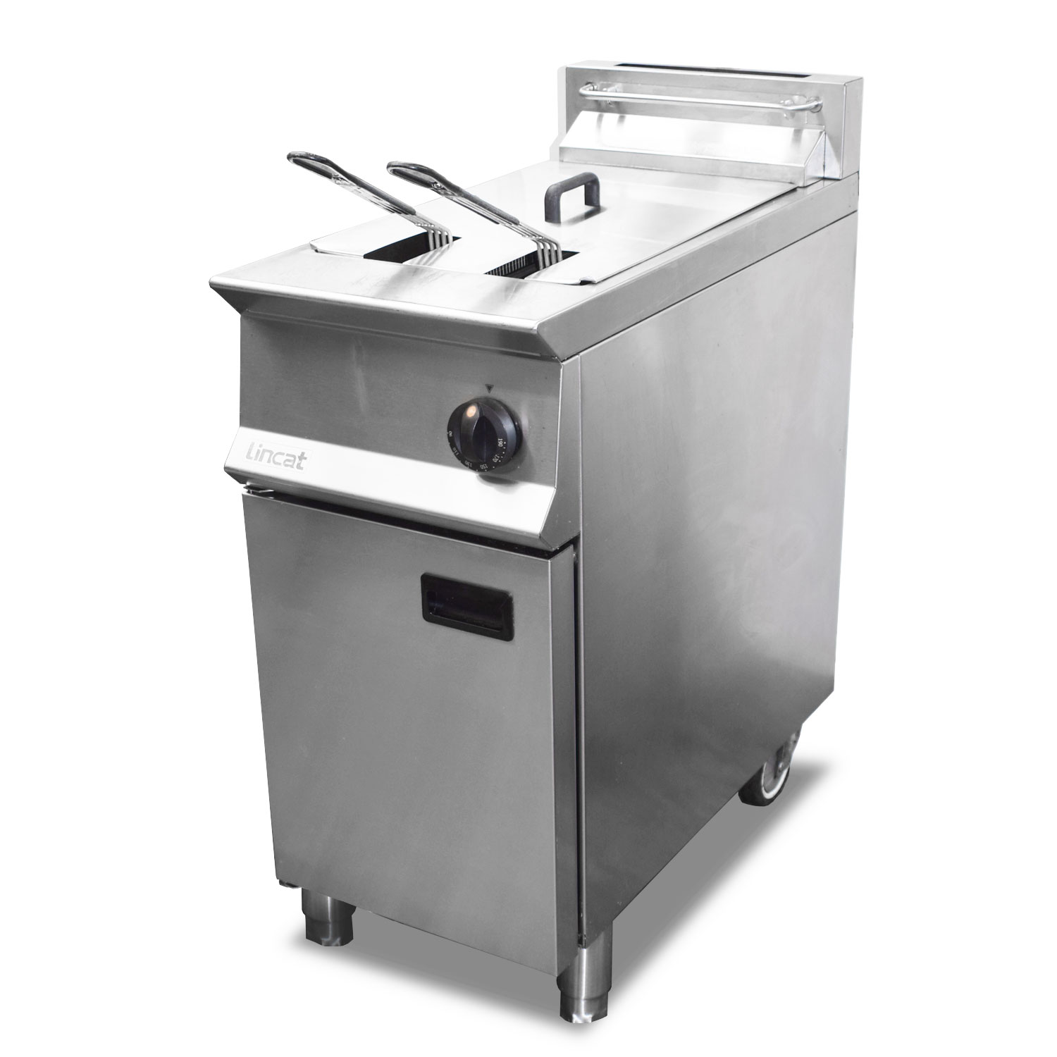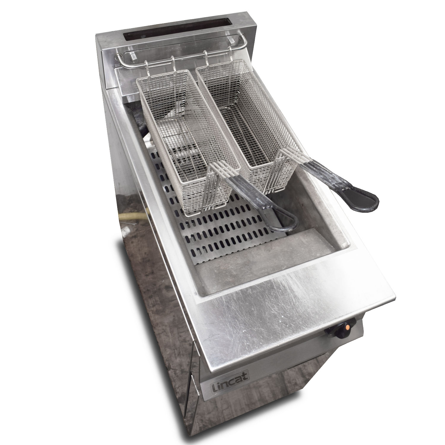 Fast, robust and reliable, this Lincat Natural Gas Fryer uses a new base heat technology to ensure quicker temperature changes and recovery times, producing better quality food with every cook. A mechanical thermostat allows for accurate and consistent temperature control, with a range of 90°C to 190°C, allowing complete control over the cooking process whilst an inboard oil drainage system for improves safety and drains the oil through the body of the fryer. The fryer features a 16ltr tank capacity and is capable of cooking up to 34kg of chips per hour. Stainless steel construction makes this fryer durable whilst front legs and rear castors add stability and allow easy positioning. The fryer comes complete with 2 frying baskets. SKU: RHC9054