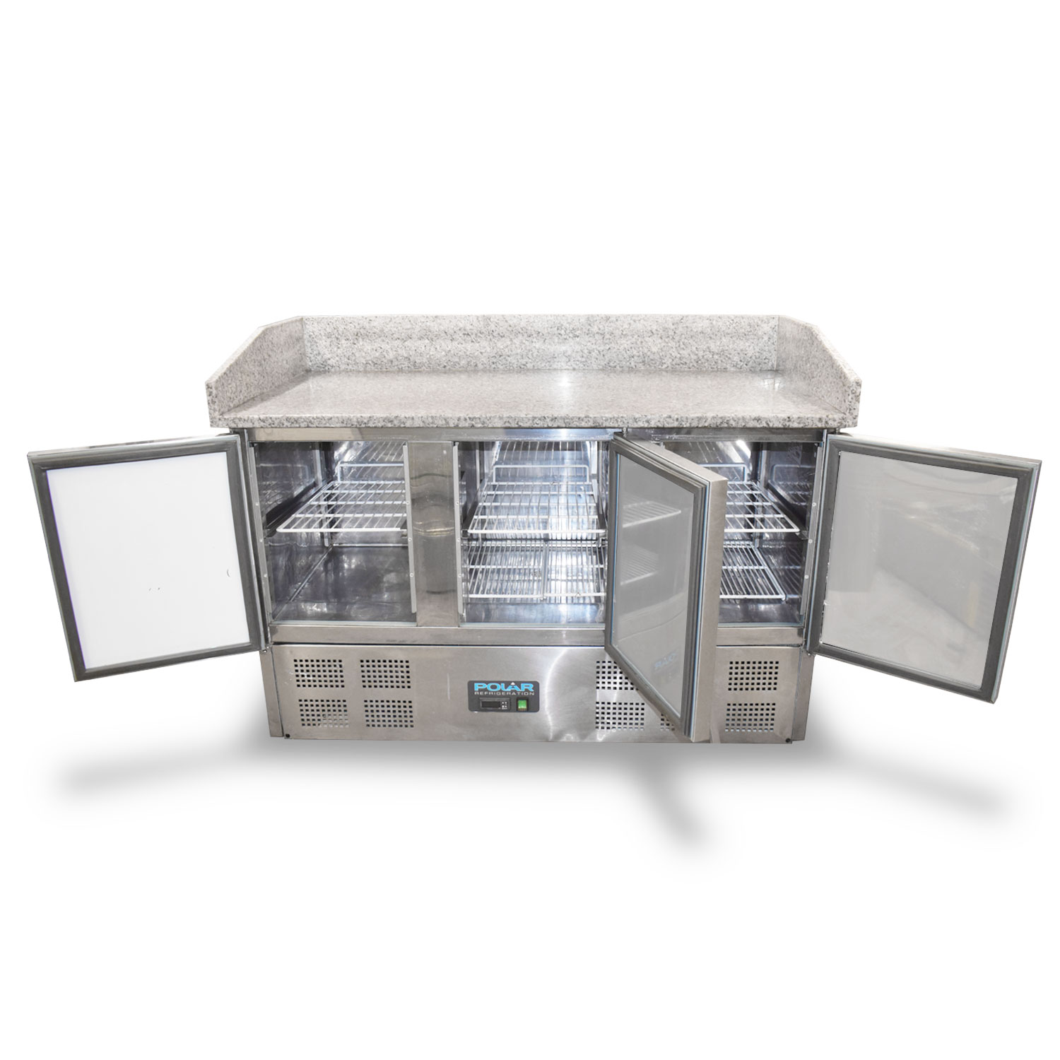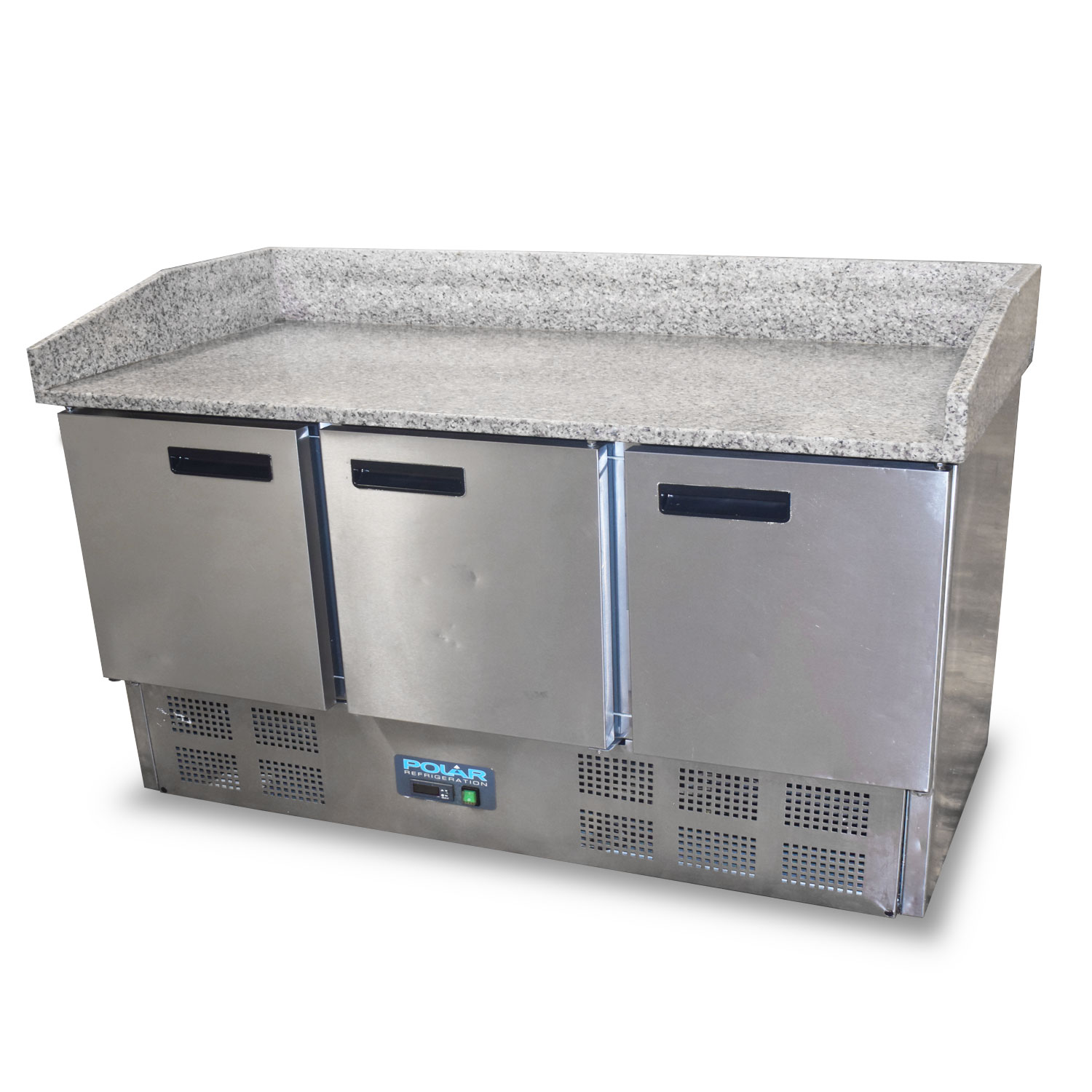 This granite top 3 door prep counter is a robust heavy‑duty prep counter that is ideal for any high volume commercial kitchen.