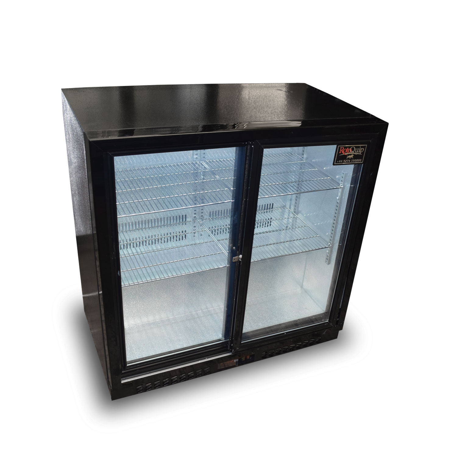 This Bottle Cooler made by Rotoquip is a double-door, undercounter bottle cooler designed for commercial use in bars, restaurants, and clubs.
